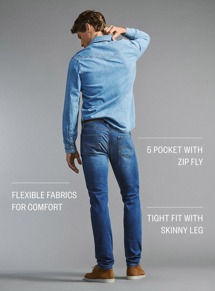 A skin-tight silhouette crafted with stretch denim for style without restriction.