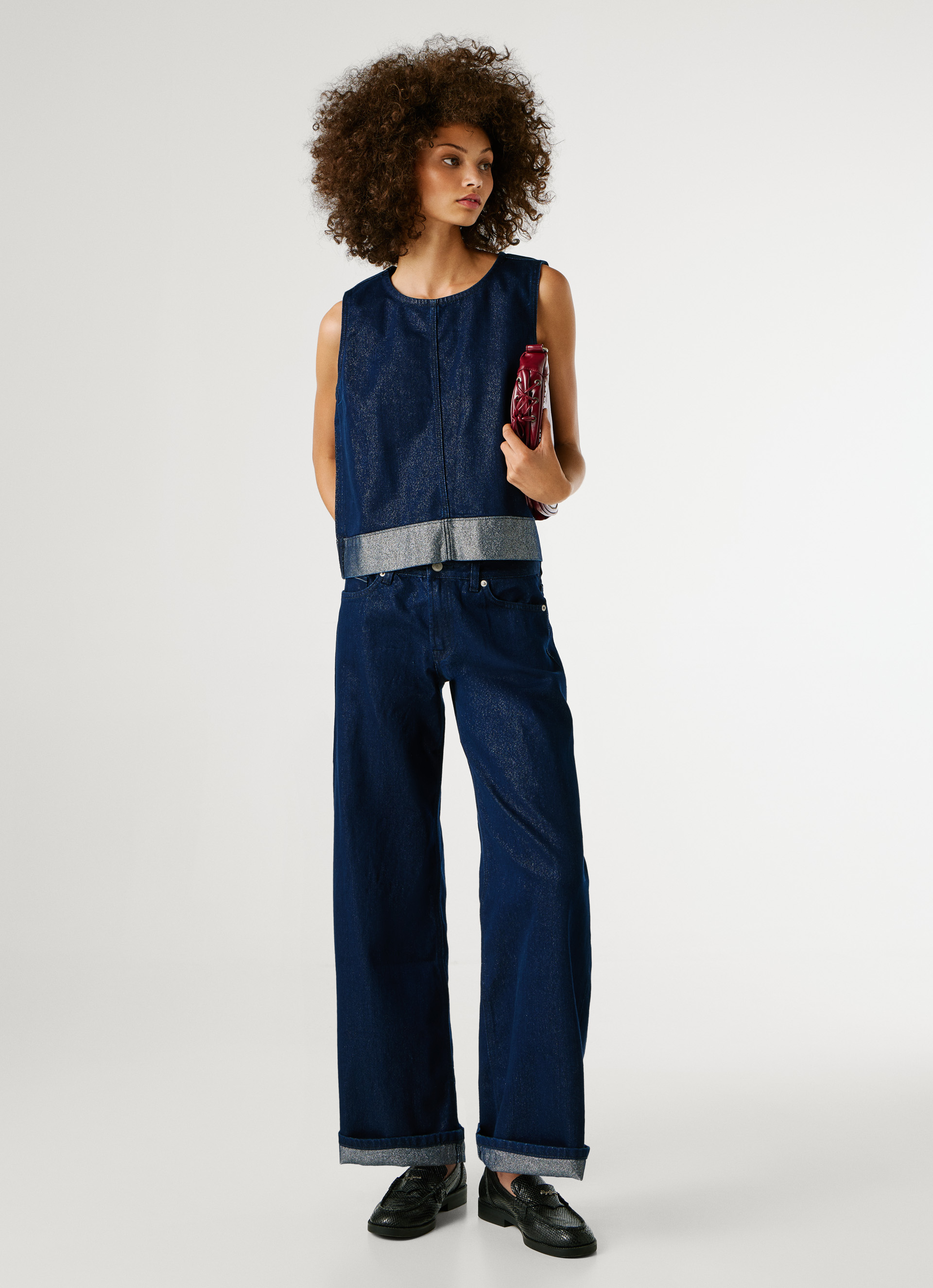 - Denimstoff mit metallisierten Details