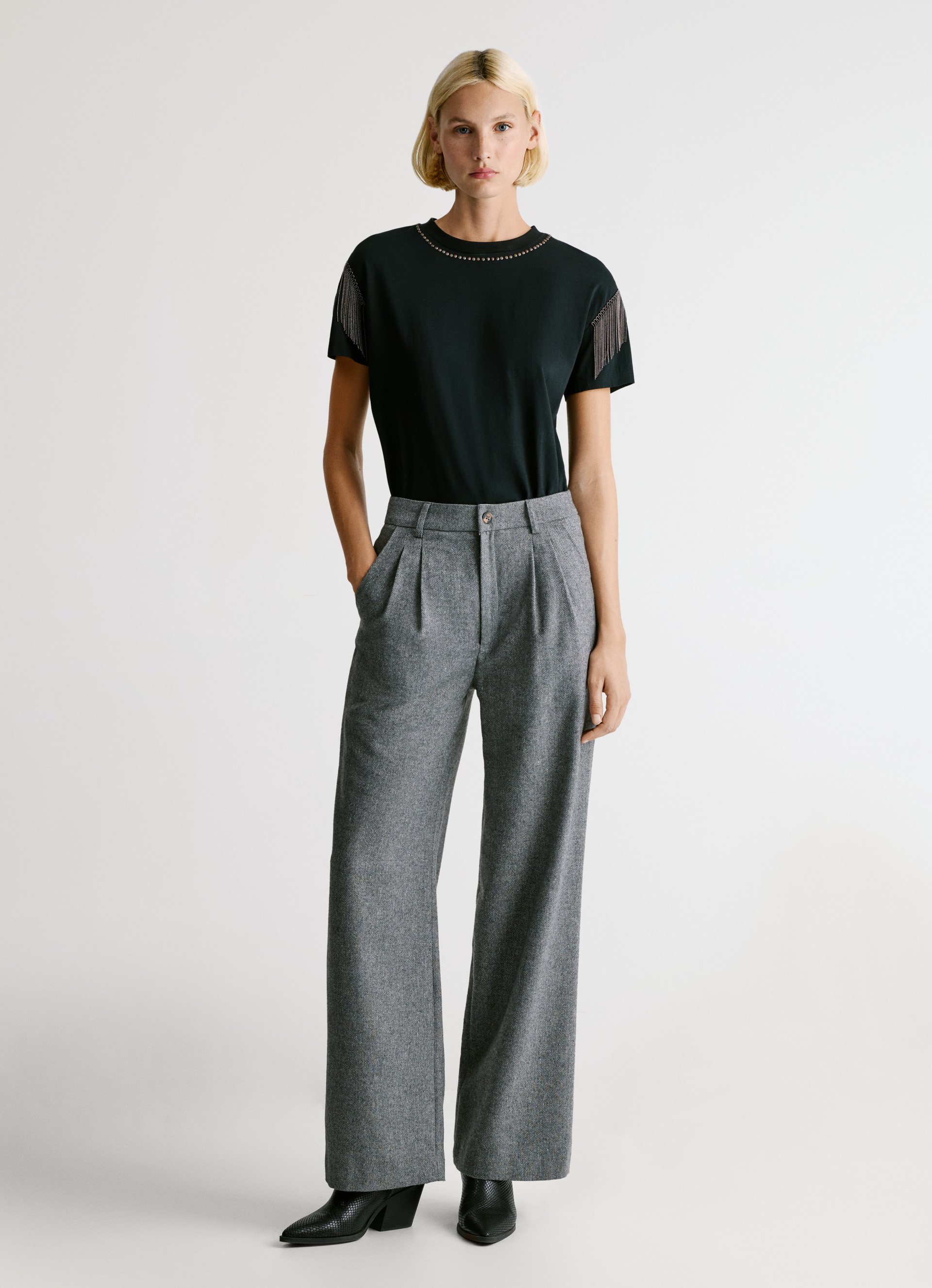 "- Hose aus Stoff mit Fischgrätenmuster
