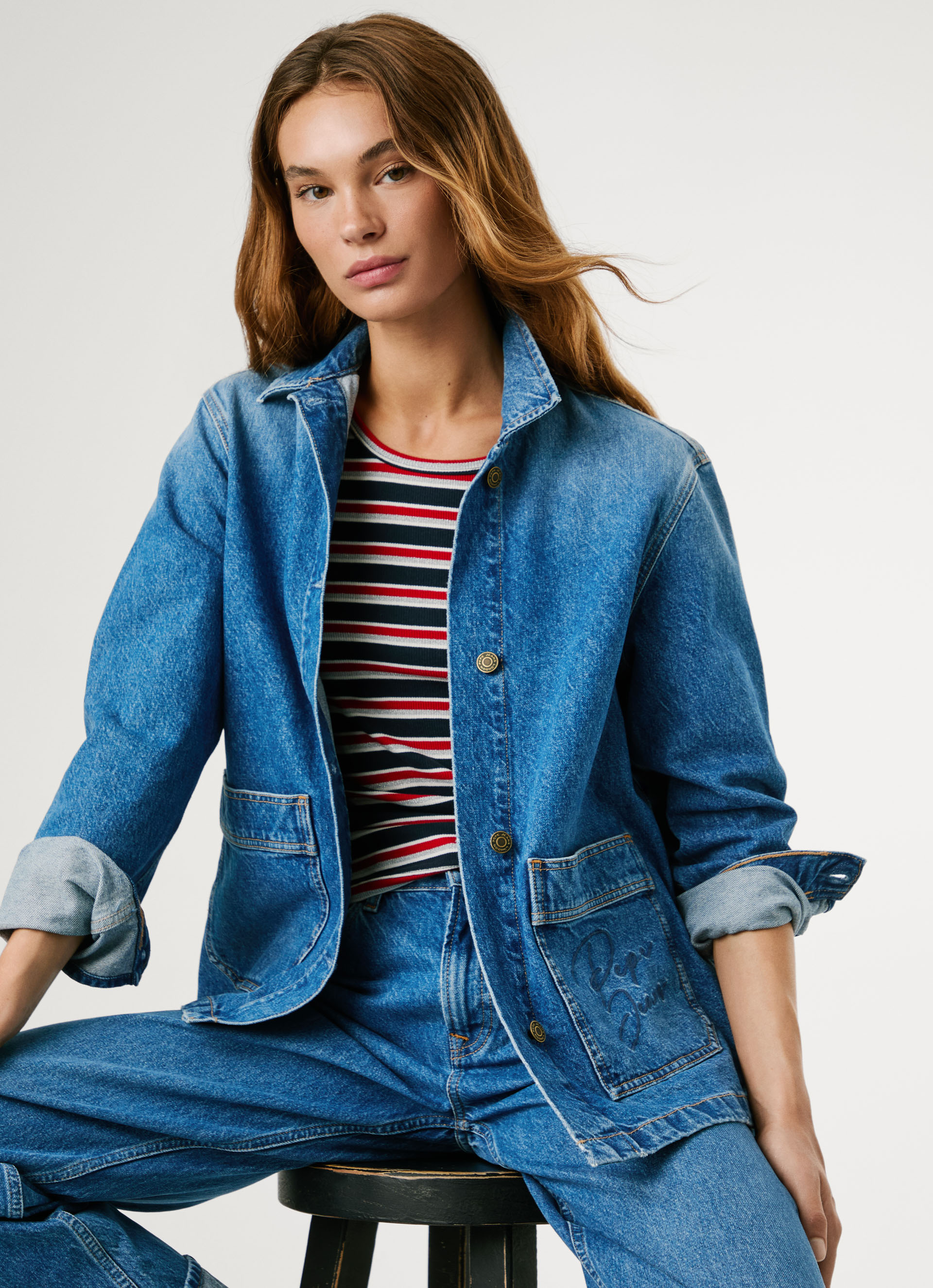 - PEPEJEANS-Logo in Kursivschrift auf der Brusttasche gestickt