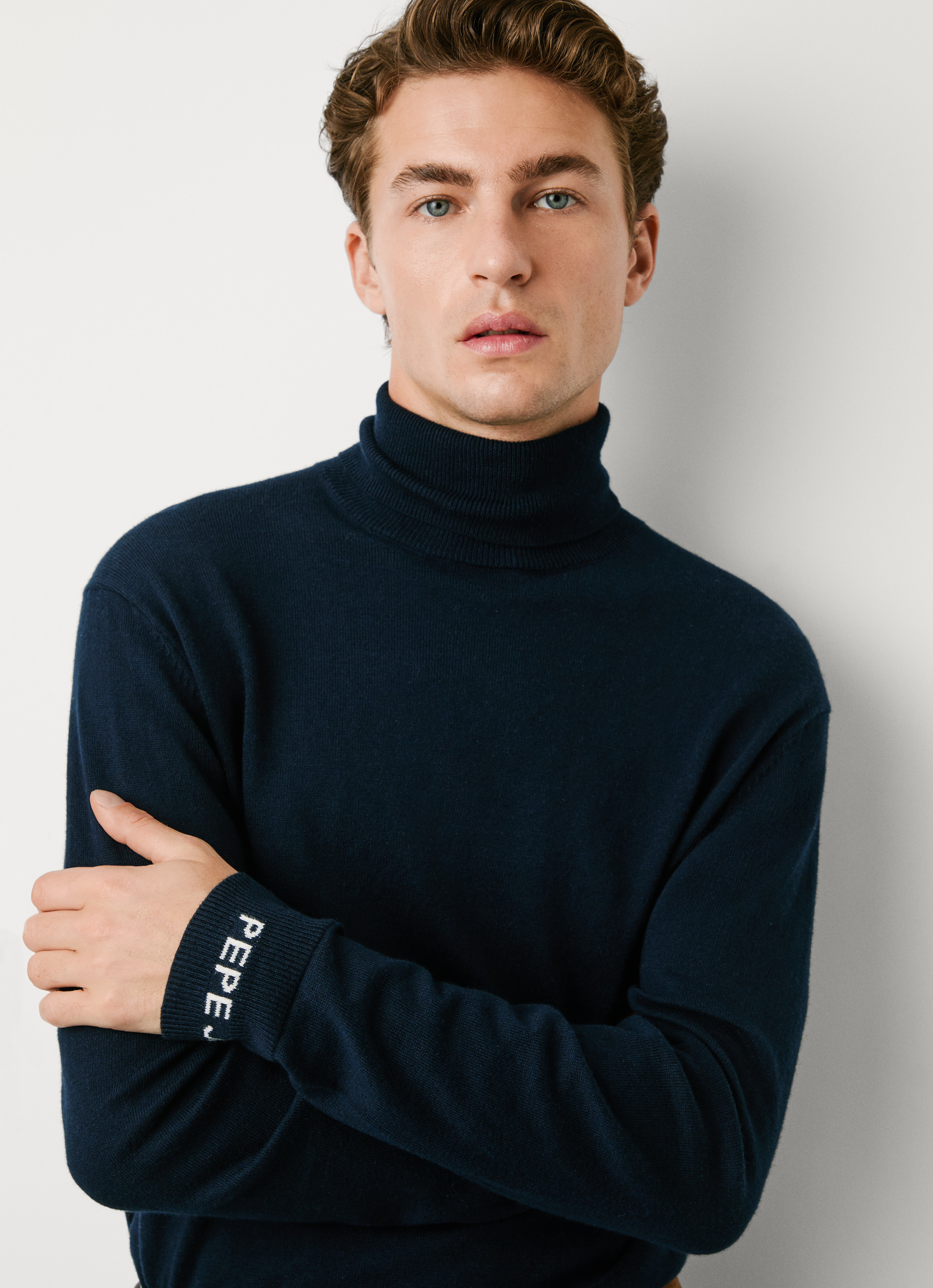 - PEPEJEANS-Logo mit Intarsienstickerei am linken Ärmel