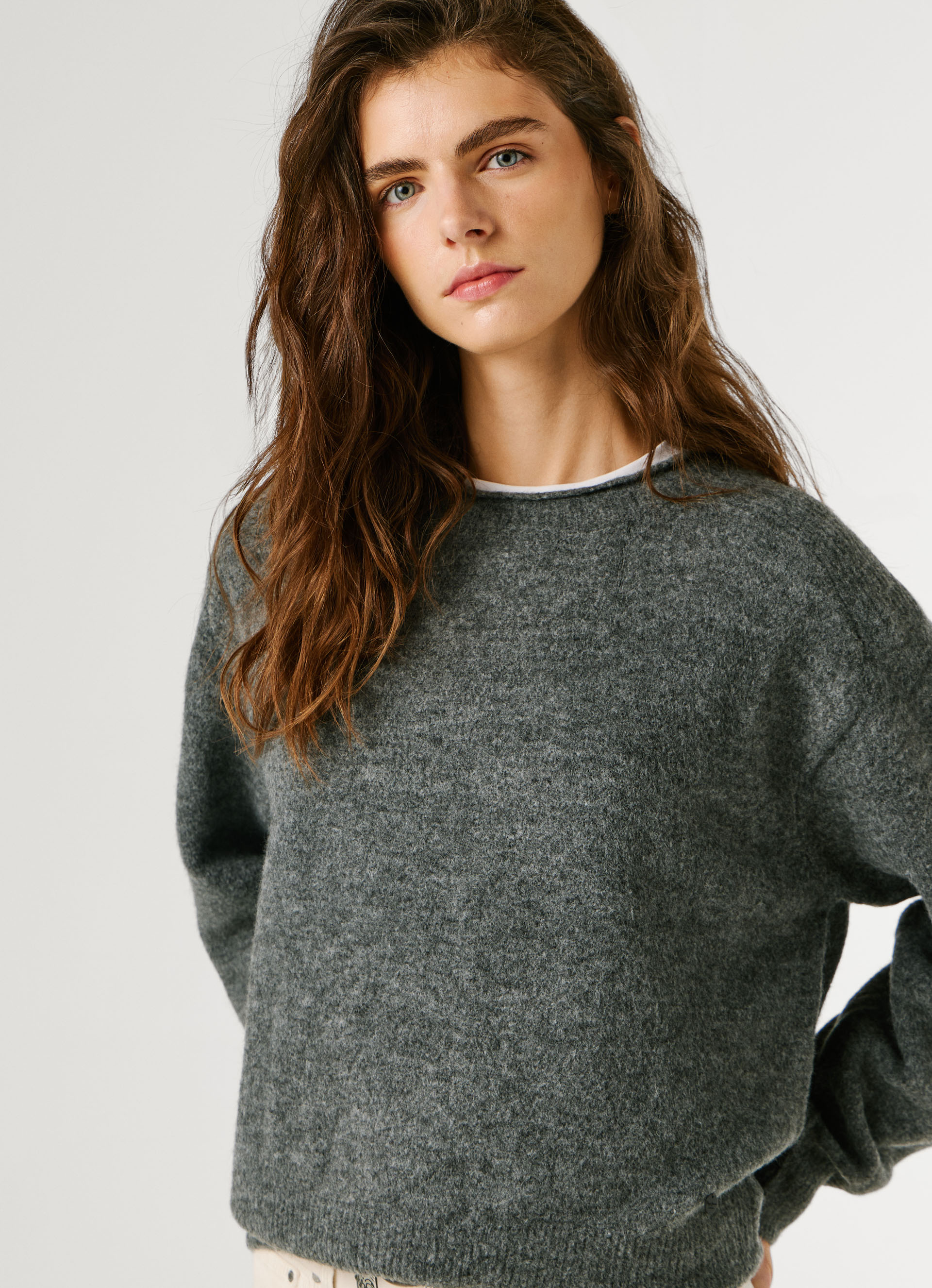 - Breites geripptes Detail an Hals, Bündchen und Saum