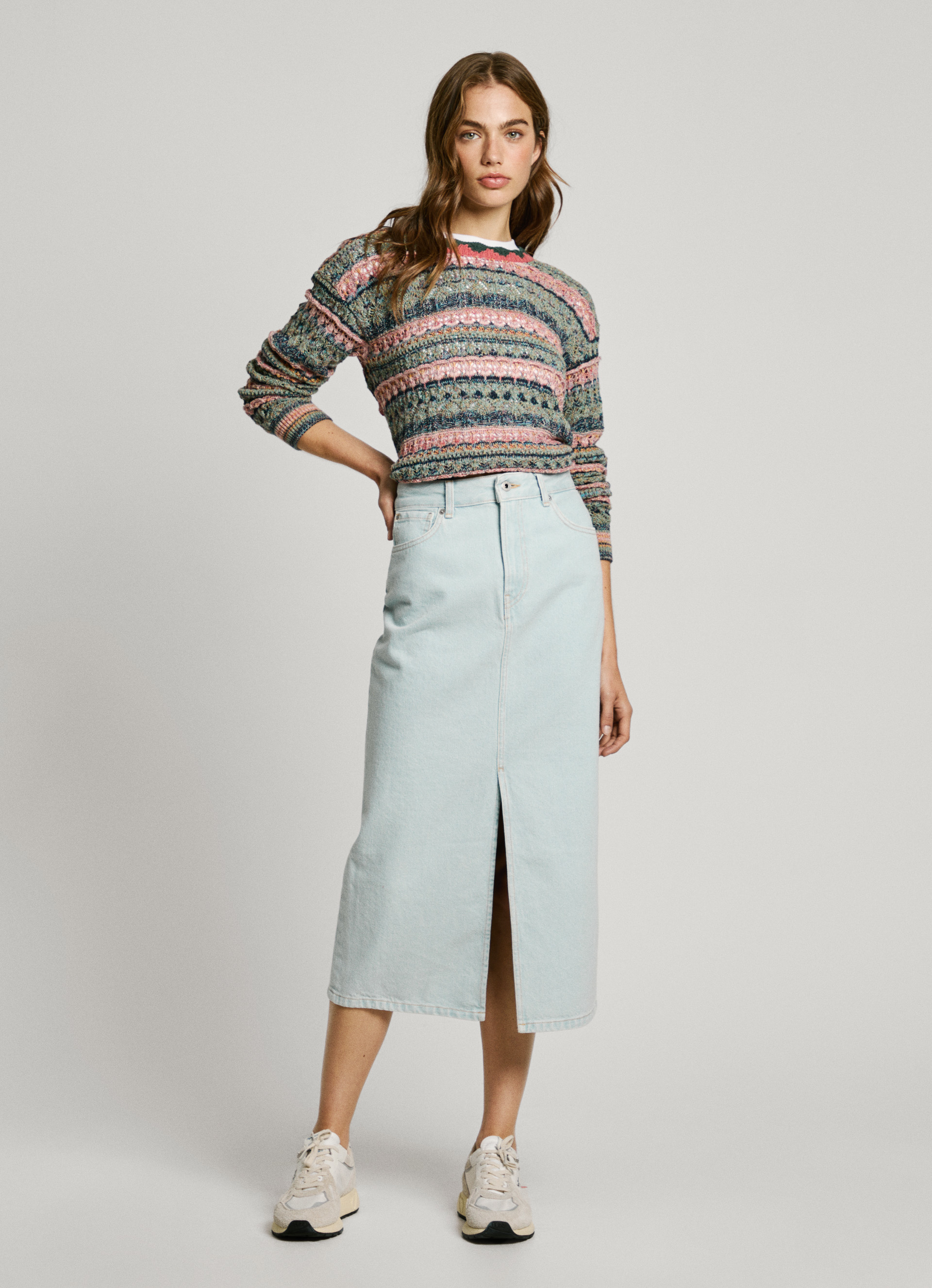 - Midi-Rock aus nicht elastischem Denimstoff