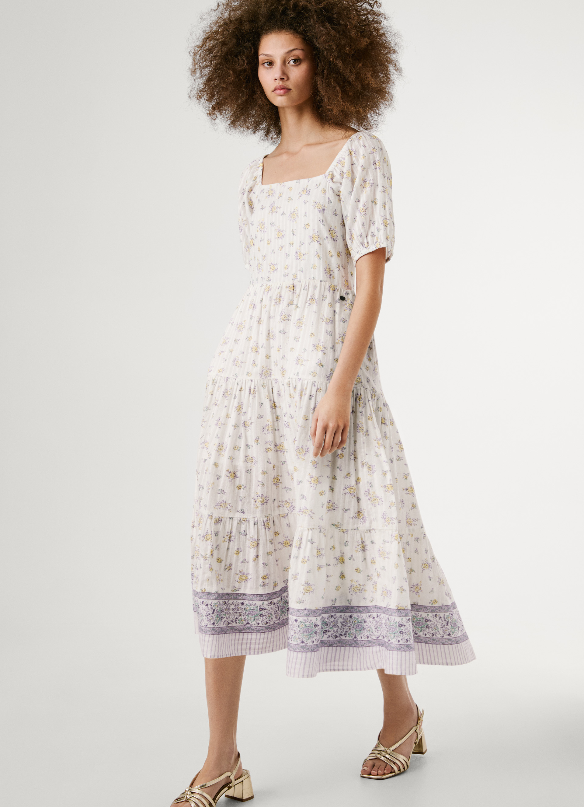 - Textured dobby fabric midi dress