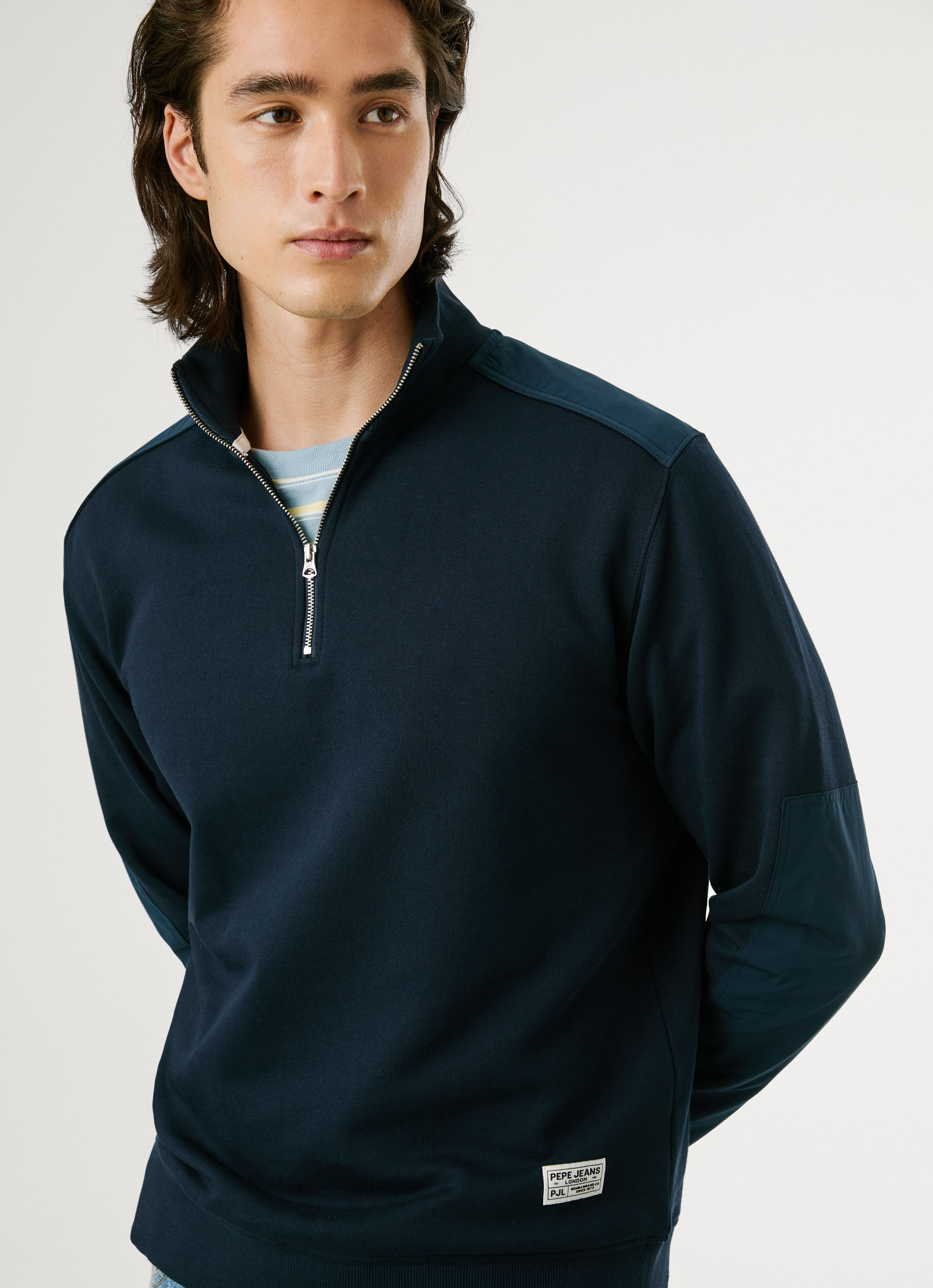 - Contrast patches on sleeves, shoulders, and inner yoke