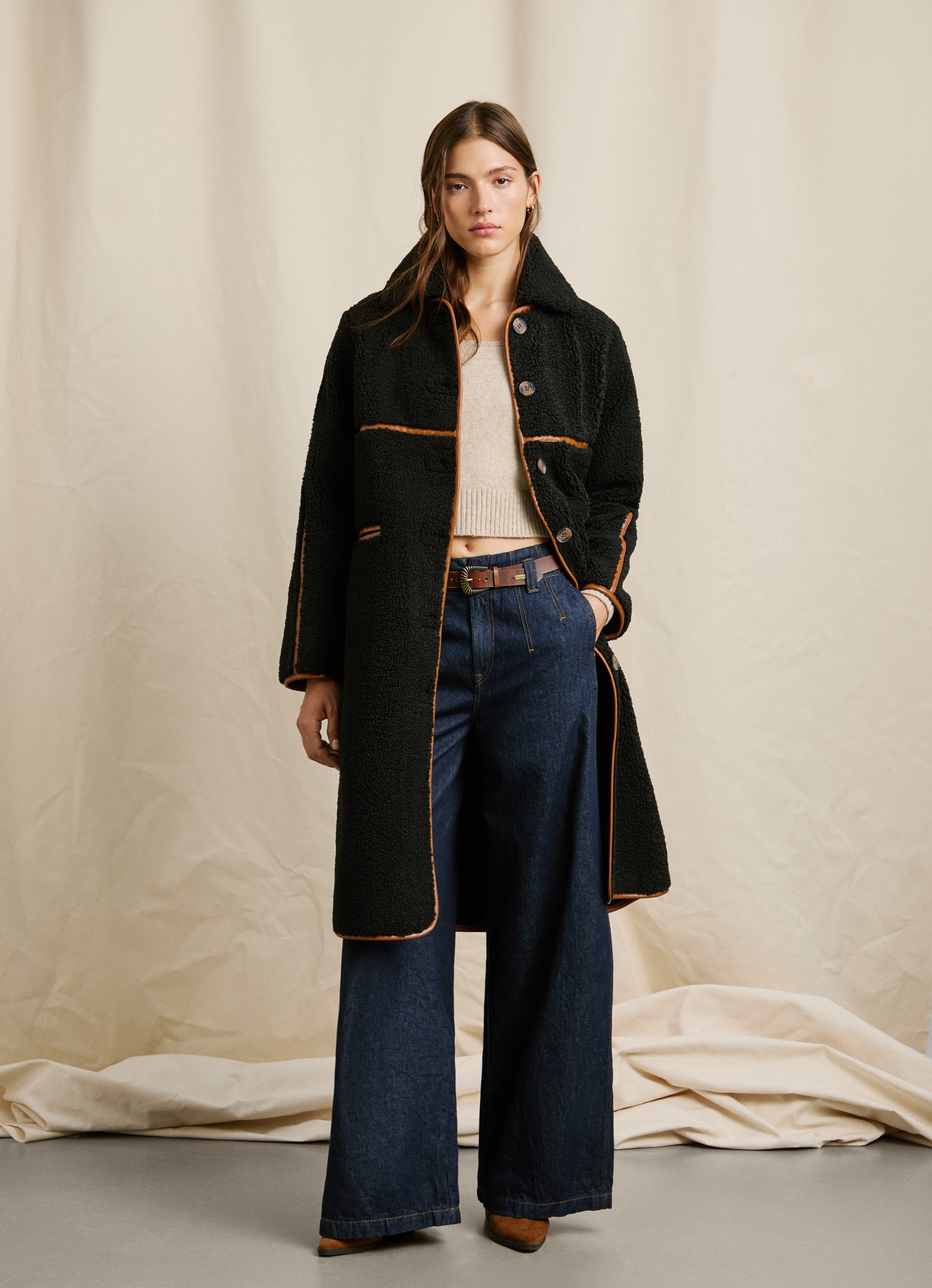 - Long jacket made in borg fabric