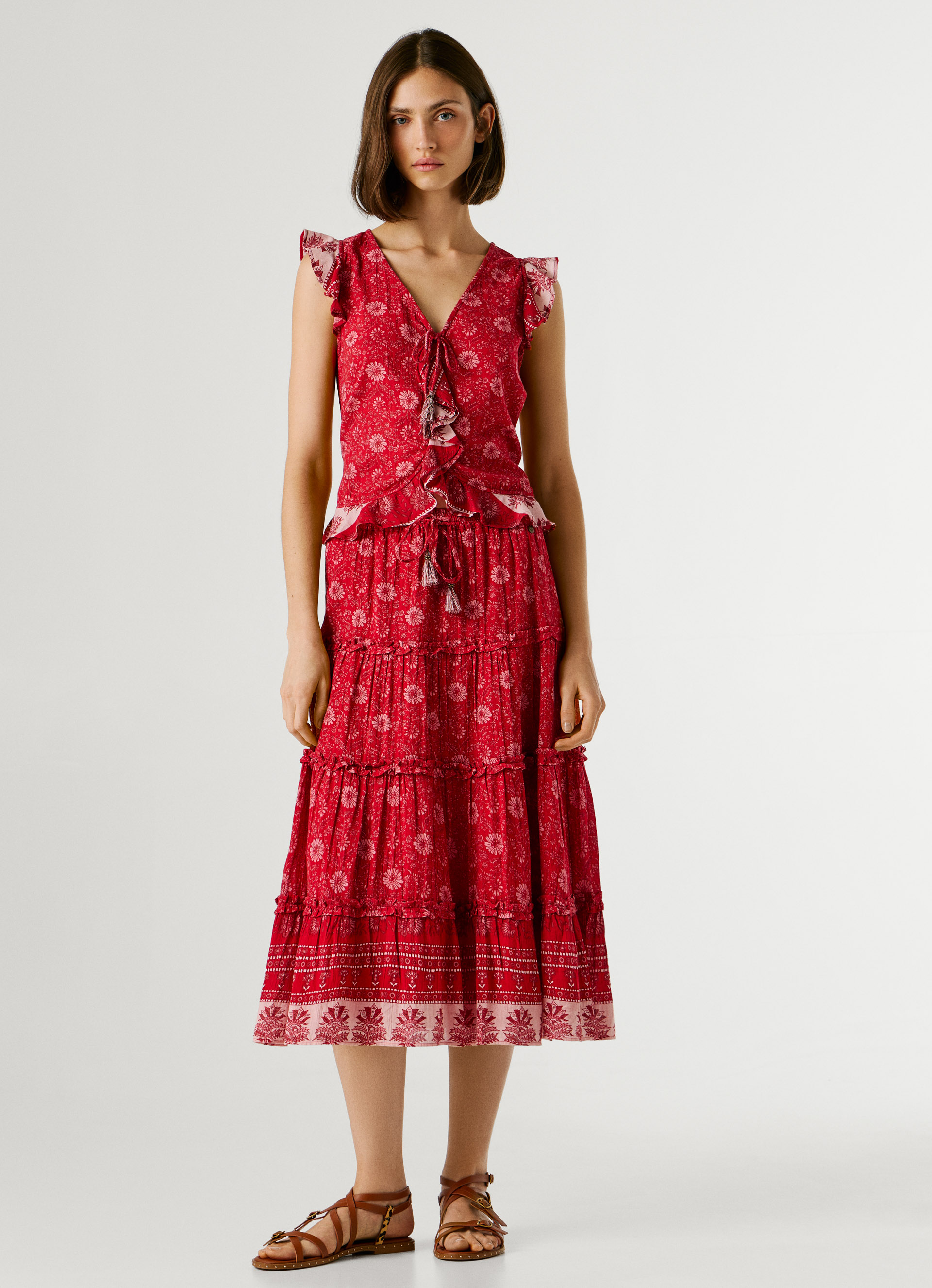 - Volantes en bajo con otro motivo floral estampado