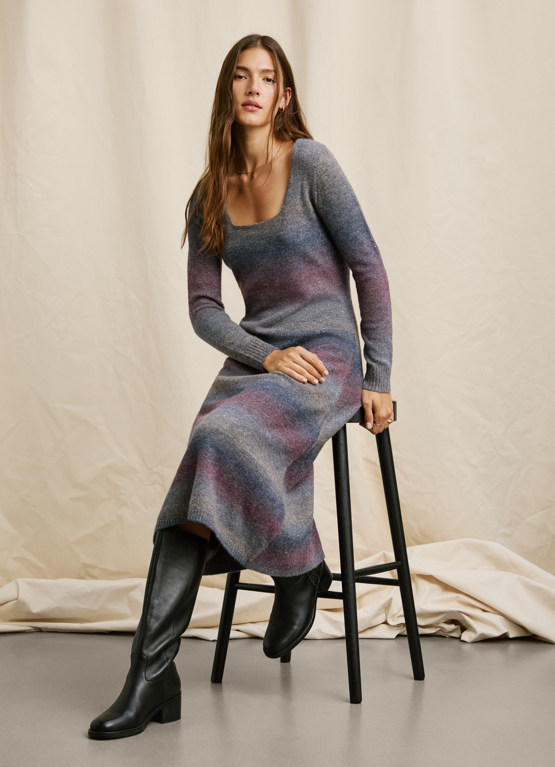 - Vestido largo en una mezcla ligera de lana