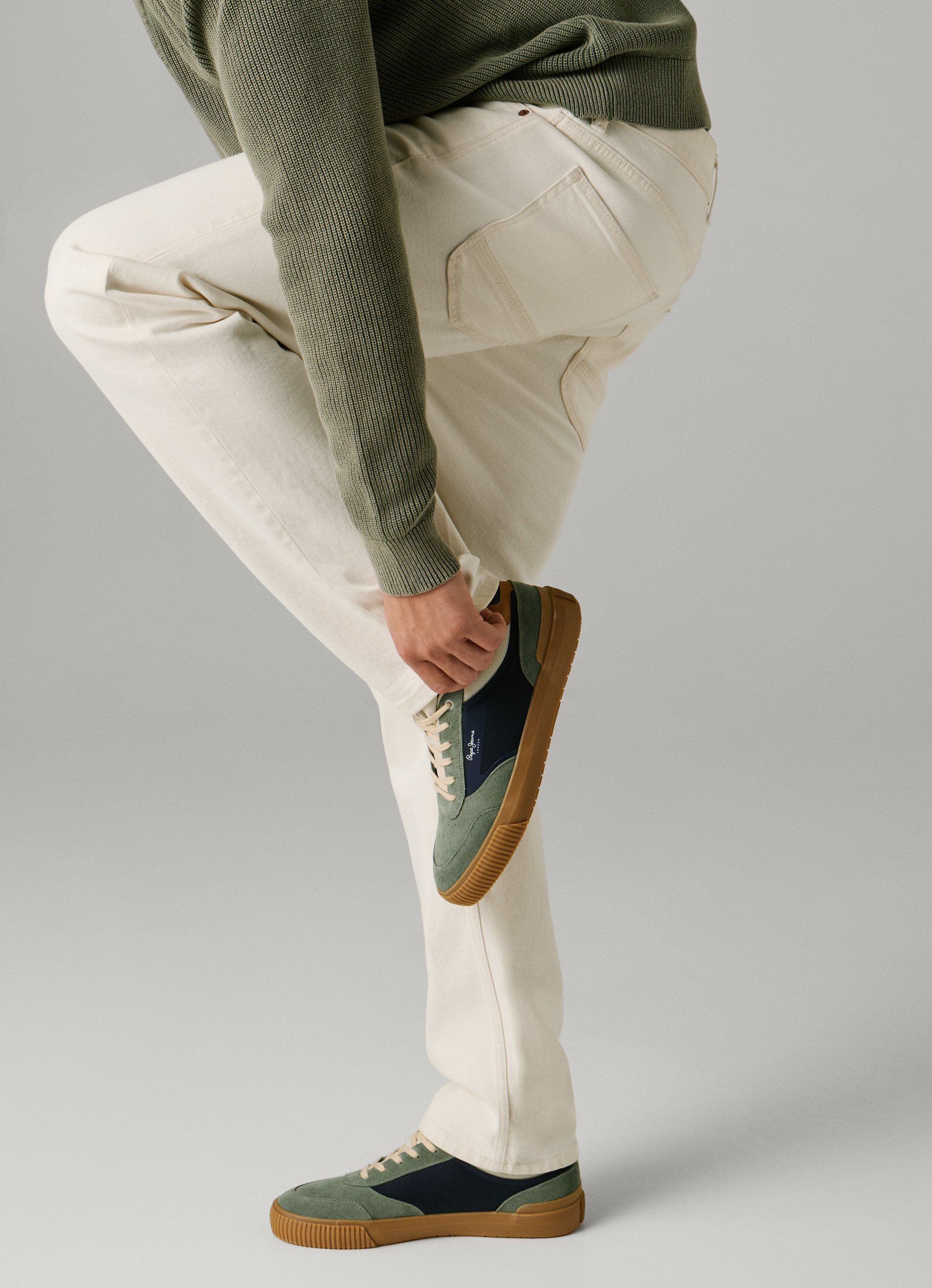 - Dettagli di camoscio sul collo del piede, gambetto e parte inferiore del tallone