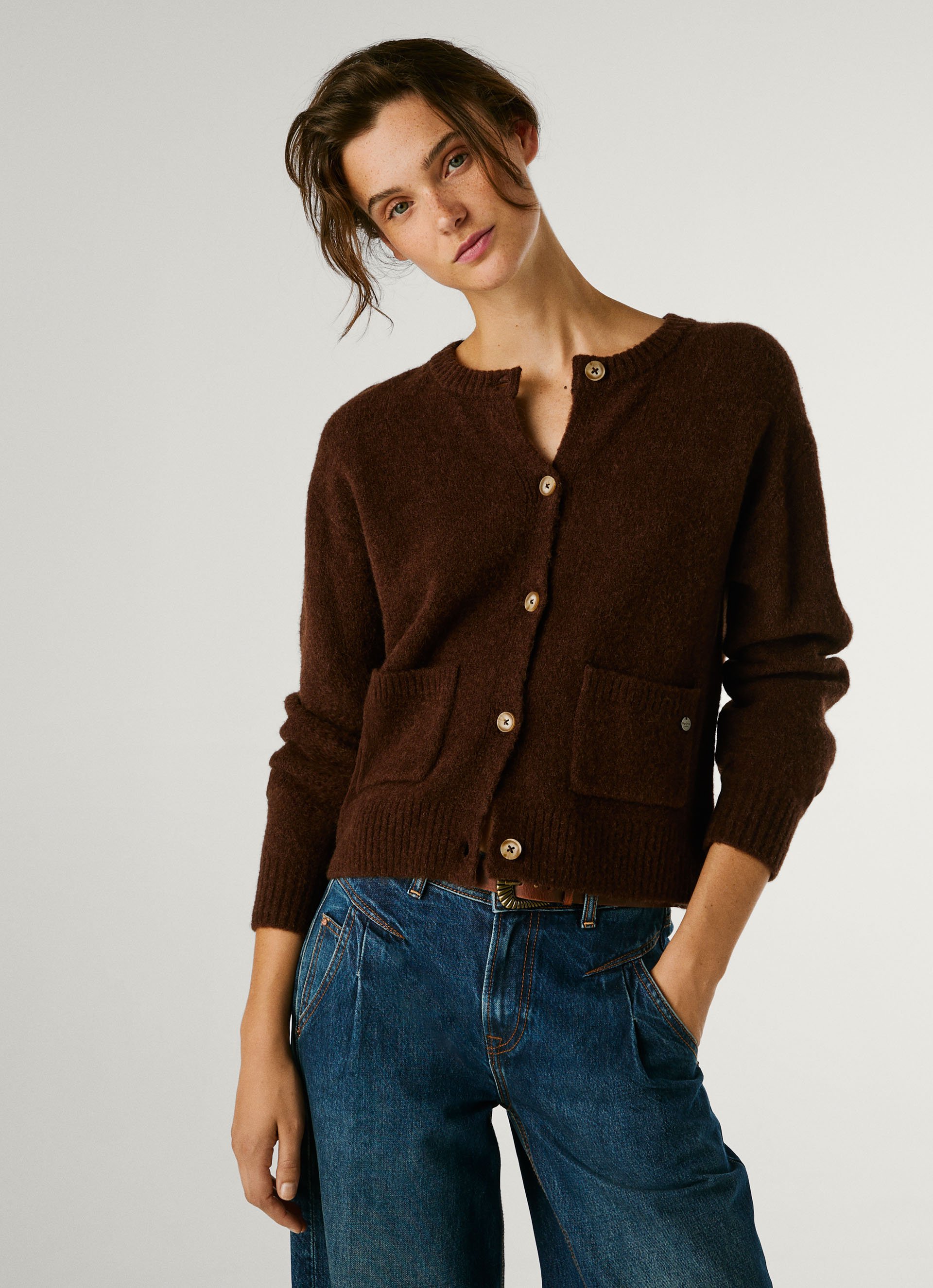 - Placa metálica circular com logo PEPEJEANS no bolso frontal